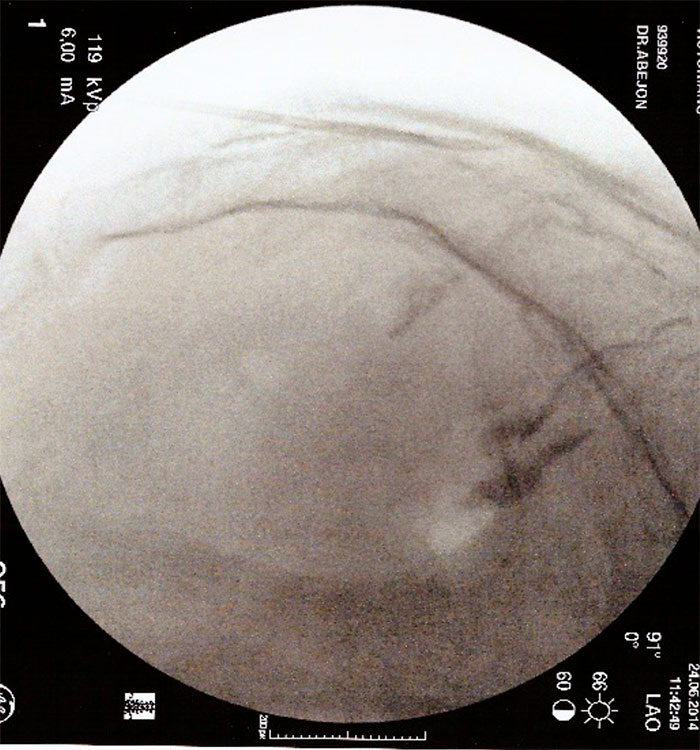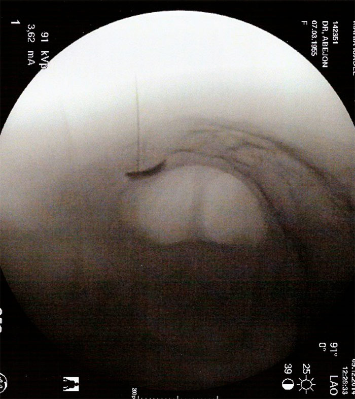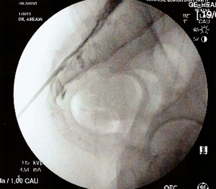 La intervención se realiza con el paciente en decúbito prono con control radiológico. Se lleva a cabo con anestesia local y sedación consciente.